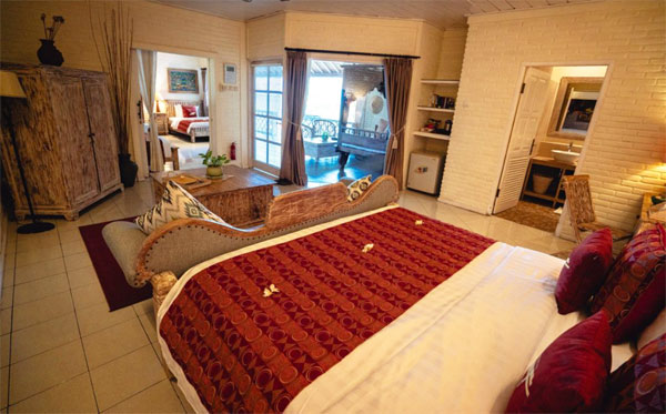 Je nach Lage haben unsere Deluxe-Zimmer entweder einen Balkon (1ster Stock) mit “Hanging Day-Bed” plus 2 Stühle/Tisch-Garnitur oder eine Terrasse mit 2 Sonnenliegen (Erdgeschoss) und sind entweder mit einem einem Queensize-Bett (160 x 200 cm) oder mit zwei Einzelbetten (jeweils 120 x 200 cm) für 2 Personen ausgestattet.