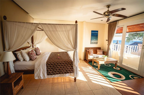 Unser “Superior-Zimmer” mit Meerblick verfügt über einen Balkon und befindet sich im ersten Stock. Das Zimmer ist mit weiß getünchtem Holz im antiken Stil und einer Mischung aus traditionellen, zeitgenössischen und modernen balinesischen Annehmlichkeiten ausgestattet, darunter ein Minikühlschrank und ein Safe.